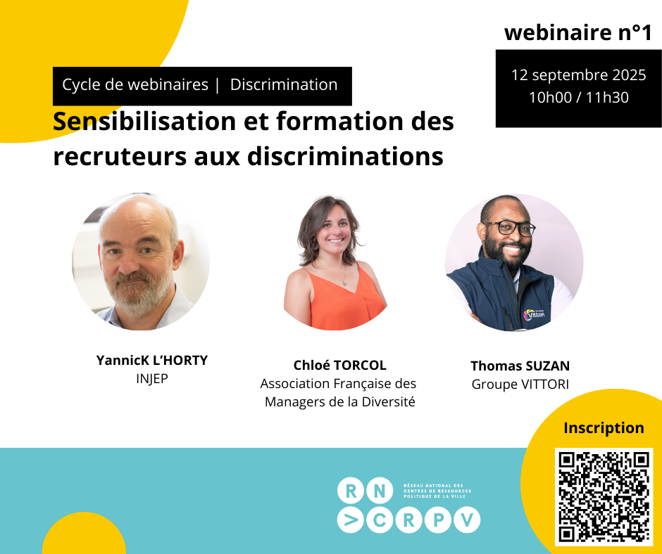 Ce premier webinaire sera l’occasion de dresser un constat des discriminations à partir de l’étude conduite par l’INJEP et Yannick L’HORTY sur les “Discriminations à l’embauche : la sensibilisation des recruteurs en question”.